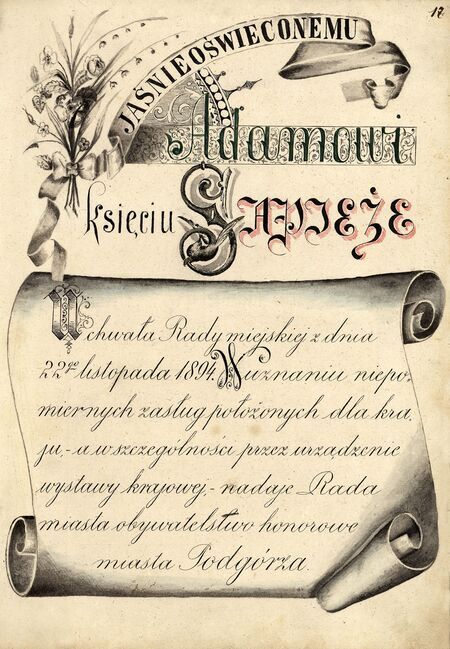 tytuł honorowego obywatela Podgórza nadany 22 listopada 1894 roku |