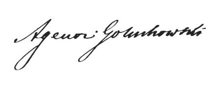 Agenor Gołuchowski na fotografii portretowej Emila Rabendinga sprzed roku 1875 oraz własnoręczny podpis uhonorowanego.