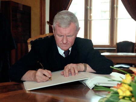 Z uroczystości wręczenia medalu z dyplomem 5 czerwca 2004 r. w sali Obrad RMK w Pałacu Wielopolskich. Akt wpisu rektora AE prof. Ryszarda Borowieckiego do Księgi Medalu „Cracoviae Merenti” oraz logo laureata.
