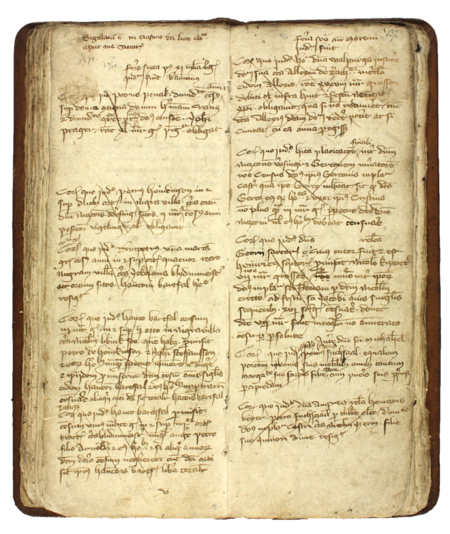 Z księgi ławniczej obejmującej lata 1365–1376 strony 136–137 z wpisem z 1371 roku, stwierdzającym, że zacna Walpurga, kramarka, sprzedała Aleksowi z Raciborza swój dom położony przy Rynku, sąsiadujący z innym domem tegoż Aleksego – oraz powiększenie zapisu imienia (Archiwum Państwowe w Krakowie, sygn. rkps 2, s. 136–137)