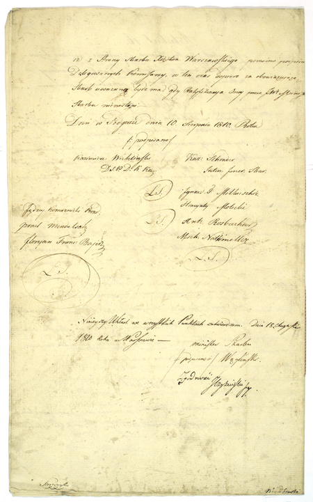 Z księgi ślubów Liber Copulatorum z lat 1800–1846 parafii św. Józefa w Podgórzu: wpis z 1806 roku poświadczający zawarcie związku małżeńskiego między Józefem Łopackim a Franciszką Nowakowską, czemu świadkował Andrzej Komarnicki, burmistrz Podgórza, tu określony jako proconsul – oraz zbliżenie zapisu imienia i urzędu (Archiwum parafii św. Józefa w Podgórzu, Liber Copulatorum, t. II, s. 23)Z najstarszych akt dotyczących powstania miasta Podgórza obejmujących lata 1779–1845: strony pierwsza i ostatnia kopii układu zawartego 10 sierpnia 1810 roku między władzami skarbowymi Księstwa Warszawskiego a miastem Podgórzem, wykonującego dekret cesarski z 9 czerwca tegoż roku w sprawie ustanowienia wolnego handlu w mieście Podgórzu; ze strony miasta układ podpisywali umocowani przez magistrat obywatele i kupcy podgórscy, w obecności między innymi Andrzeja Komornickiego, tu nazwanego „prezydentem” – oraz zbliżenie zapisu imienia i urzędu (Archiwum Narodowe w Krakowie, sygn. P 1, s. 323, 330)