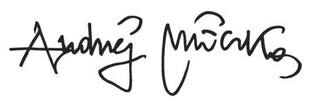 Fotografia portretowa Andrzeja Mleczki i własnoręczny podpis uhonorowanego.