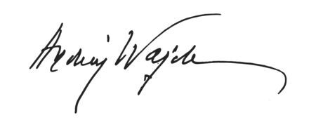 Andrzej Witold Wajda, reżyser filmowy i teatralny, scenarzysta. Urodzony 6 marca 1926 r. w Suwałkach. Podczas okupacji łącznik w Armii Krajowej. Studiował malarstwo w Akademii Sztuk Pięknych w Krakowie, ukończył Państwową Wyższą Szkołę Filmową w Łodzi. Pełnometrażowo debiutował w 1955 r., był współtwórcą tzw. polskiej szkoły filmowej. Laureat honorowego Oscara w 2000 r. Doktor h.c. Uniwersytetu Jagiellońskiego i innych uczelni. Odznaczony m.in. Orderem Orła Białego. Zmarł 9 października 2016 r. w Warszawie; pochowany na cmentarzu Salwatorskim w Krakowie.