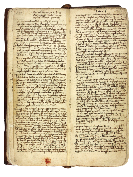 Z księgi radzieckiej obejmującej lata 1392–1411 strony 248–249 z początkową częścią obszernego opisu „sprawy Andrzeja Wierzynka” z 1406 roku – oraz powiększenie zapisu imienia (Archiwum Państwowe w Krakowie, sygn. rkps 427, s. 248–249)