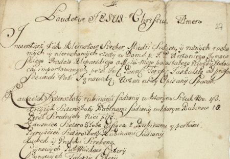 Z akt radzieckich specjalnych miasta Kleparza – inwentarzy rzeczy ruchomych i nieruchomym mieszczan z lat 1709–1792: początkowy fragment sporządzonego w 1731 roku inwentarza rzeczy znajdujących się w domu rajcy Antoniego Janowskiego, zastanych przez jego drugą żonę po zmarłej pierwszej żonie – oraz zbliżenie zapisu imienia i urzędu (Archiwum Narodowe w Krakowie, sygn. KL 74, s. 27)
