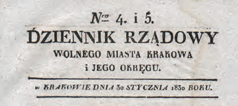 Obwieszczenie Senatu Rządzącego Wolnego Miasta Krakowa z 1829 r. opublikowane w 1830 r.,