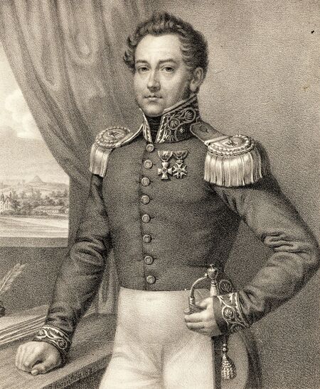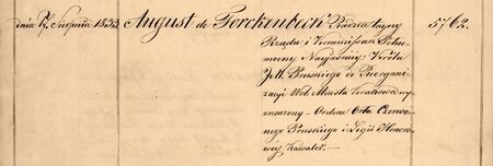 Portret Augusta von Forckenbecka w grafice Józefa Sonntaga datowanej na rok 1833 oraz własnoręczny podpis uhonorowanego.