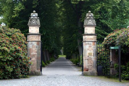fotografia najstarszej z bram wejściowych na cmentarz Zentralfriedhof w niemieckim Münsterze, w mieście tym pochowany został August von Forckenbeck – prawdopodobnie na jednym z nieistniejących już cmentarzy (patrz także s. 114–115).