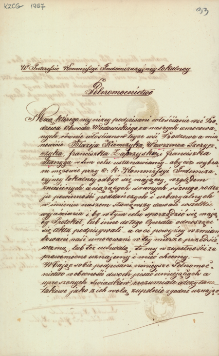 Dokument z 1855 roku, w którym chłopi-gospodarze ze wsi Bodzów wraz ze swoim wójtem i przysiężnym na czele udzielają pełnomocnictwa do występowania w ich imieniu przed Komisją ds. Zniesienia Ciężarów Gruntowych (indemizacyjną) działającą w ramach procesu uwłaszczeniowego zamykającego epokę pańszczyźnianego poddaństwa; widoczna akceptacja ze strony dominium, to jest władzy dworskiej sprawowanej przez właściciela wsi (Archiwum Narodowe w Krakowie, sygn. KZCG 1967, s. 33–34)(1820) Odciski pieczęci urzędowych Bodzowa z lat 1820, 1855, 1895 i 1938 (CPAHU we Lwowie, sygn. fond 20, opis 8, sprawa 20; Archiwum Narodowe w Krakowie, sygn. 29/279/1967, s. 34; sygn. 29/1023/33, nlb.; Archiwum Opactwa Benedyktynów w Tyńcu, sygn. 5/1/4/4)(1855) Odciski pieczęci urzędowych Bodzowa z lat 1820, 1855, 1895 i 1938 (CPAHU we Lwowie, sygn. fond 20, opis 8, sprawa 20; Archiwum Narodowe w Krakowie, sygn. 29/279/1967, s. 34; sygn. 29/1023/33, nlb.; Archiwum Opactwa Benedyktynów w Tyńcu, sygn. 5/1/4/4)(1895)Odciski pieczęci urzędowych Bodzowa z lat 1820, 1855, 1895 i 1938 (CPAHU we Lwowie, sygn. fond 20, opis 8, sprawa 20; Archiwum Narodowe w Krakowie, sygn. 29/279/1967, s. 34; sygn. 29/1023/33, nlb.; Archiwum Opactwa Benedyktynów w Tyńcu, sygn. 5/1/4/4)(1938)Odciski pieczęci urzędowych Bodzowa z lat 1820, 1855, 1895 i 1938 (CPAHU we Lwowie, sygn. fond 20, opis 8, sprawa 20; Archiwum Narodowe w Krakowie, sygn. 29/279/1967, s. 34; sygn. 29/1023/33, nlb.; Archiwum Opactwa Benedyktynów w Tyńcu, sygn. 5/1/4/4)