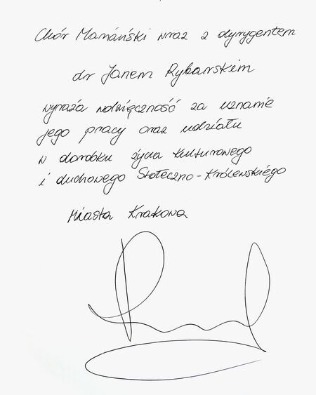 …w uznaniu szczególnych zasług dla Stołecznego Królewskiego Miasta Krakowa… (z uchwały Rady Miasta Krakowa nr XLIII/520/08) |