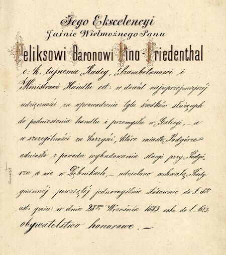 tytuł honorowego obywatela Podgórza nadany 28 września 1883 roku |