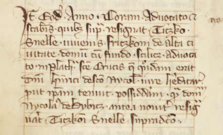 Z najstarszej zachowanej księgi miejskiej krakowskiej obejmującej lata 1300-1375: wpis z 1343 roku stwierdzający zakup domu wraz z gruntem położonego przy ul. Krzyża Świętego w Krakowie, dokonany przez Friczka z Wysokiego Miasta (de Alta Civitate), wójta – oraz zbliżenie zapisu imienia i urzędu (Archiwum Narodowe w Krakowie, sygn. rkps 1, s. 156)