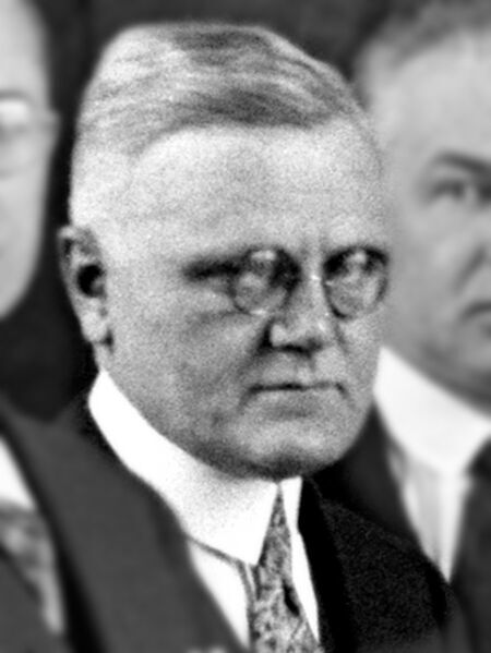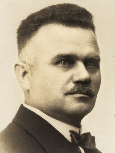 Rok 1928, w lipcu uroczystość poświęcenia gmachu Pałacu Wielopolskich wraz z salą obrad Rady Miejskiej wyremontowaną po pożarze z 1926 roku; przemawia prezydent Karol ROLLE (nr 2861), obok wiceprezydent Józef SARE (nr 2444), przed nimi na podium magistracki sekretarz Rady Franciszek Strasik.