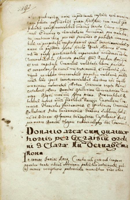 Z kopiariusza klasztoru Klarysek w Krakowie wpis zawierający kopie dokumentu wystawionego w 1318 roku, w którym wymieniono Gierasza – oraz powiększenie zapisu imienia (Archiwum klasztoru ss. Klarysek w Krakowie)