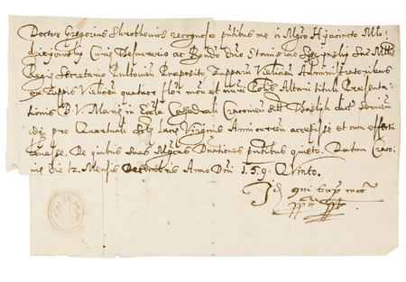 Dokument wystawiony w 1595 roku w Krakowie przez Grzegorza Skrobkowica, w którym zeznaje on, że otrzymał od podskarbiego koronnego Hiacynta Młodziejowskiego oraz sekretarza królewskiego Stanisława Sicińskiego (obaj byli administratorami żupy wielickiej) 4 złote polskie z przeznaczeniem na altarię Marii Panny przy kościele katedralnym krakowskim za kolejny kwartał św. Łucji – oraz powiększenie znaku pieczętnego (gmerku) Grzegorza Skrobkowica (Muzeum Narodowe w Krakowie, Biblioteka Książąt Czartoryskich, sygn. rkps 574/185)