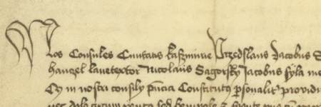 Fragment dokumentu wydanego w 1454 roku w Kazimierzu, w którym rajcowie, z Hanzelem wełniarzem w składzie, potwierdzili, że Andrzej Garbek sprzedał Piotrowi Czarnemu starszemu (nr 99) i jego żonie Małgorzacie ogród na Blechu pod warunkiem, że nowy właściciel będzie płacił czynsz roczny w wysokości 1 grzywny na rzecz rady miejskiej, a 1 grzywnę kościołowi św. Stanisława na Skałce; ponadto rajcy dodali wówczas Piotrowi kawałek zarośli nad Wisłą, w sąsiedztwie kupionego ogrodu – oraz zbliżenie zapisu imienia (Archiwum Narodowe w Krakowie, sygn. perg. 248)