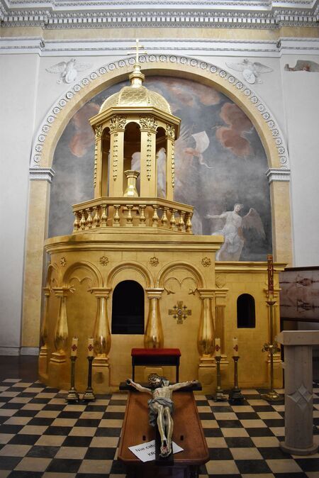 Portret Lubomirskiego w mundurze kawalera maltańskiego oraz miejsce spoczynku w krypcie pod kaplicą Grobu Pańskiego bazyliki kolegiackiej pw. Ducha Świętego w Przeworsku (patrz także s. 109).