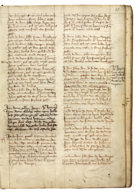 Z najstarszej zachowanej księgi miejskiej krakowskiej obejmującej lata 1300−1375 (dalej jako „Najstarsza księga”) strona 27, z wpisem z 1312 roku z listą nowo wybranych rajców – oraz powiększenie zapisu imienia (Archiwum Państwowe w Krakowie, sygn. rkps 1, s. 27)