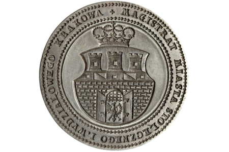 W wyniku ustawicznego reformowania przez władze austriackie swojej administracji zlikwidowano w 1860 r. Rząd Krajowy w Galicji Zachodniej, którego Kraków był siedzibą, co pociągnęło dalsze reorganizacje, już w duchu bardziej decentralistycznym, zapowiadającym zbliżające się czasy autonomiczne. Z tego okresu pochodzi herb miasta widoczny na magistrackiej pieczęci (na powrót z napisem w otoku tej pieczęci w języku polskim), którą datujemy na rok 1860 (zob. il. 024). Tu pojawia się „nowe-stare” – z jednej strony zerwanie ze stylistyką herbu z czasów Wolnego Miasta Krakowa, a z drugiej powrót do rysunku znanego i stosowanego od roku 1661,