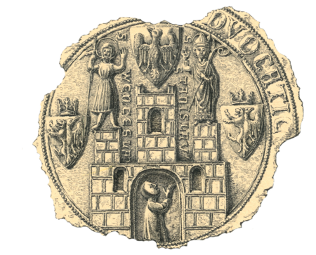 Ten kształt herbu przetrwał do ostatniego ćwierćwiecza XVI w. – wówczas to zostanie w istotny sposób wzbogacony, o czym mowa będzie dalej. Póki co zatrzymaliśmy się na okresie, w którym brama w herbowym murze jest pusta, co prezentują przykłady gównie na pieczęciach miasta (zob. il. 005–008). Odzwierciedlenie tego znajdziemy także w aneksie poświęconym historycznym wizerunkom herbu Krakowa.