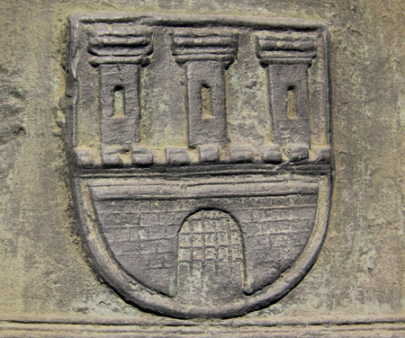 Najstarszym istniejącym do dziś zabytkiem z herbem Krakowa jest dzwon z kościoła Mariackiego – ufundowany przez Władysława Jagiełłę, odlany ok. roku 1388 przez ludwisarza Jana z Nowej Wsi Spiskiej, nazwany dzwonem Królewskim lub Tenebratem. Oto na jego kloszu znajduje się relief: na prostej, średniowiecznej tarczy mur z blankami (krenelażami) i trzema wieżami, z otwartą bramą, w której widnieje częściowo opuszczona kratownica. To najstarsza postać herbu Krakowa zachowana do współczesnych nam czasów (zob. il. 003). Na dzwonie towarzyszy ona herbowi Litwy, być może to symboliczne wyobrażenia starej i nowej ojczyzny króla Jagiełły (Bochniak 2018, s. 48), a może po prostu są to herby fundatorów – wówczas byłby to ślad, że do odlania Tenebrata przyczyniła się ówczesna Rada Miejska Krakowa.