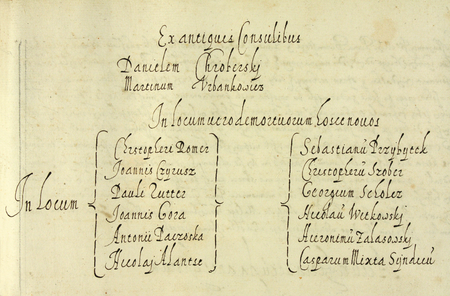 Z księgi radzieckiej obejmującej lata 1598–1601 fragment strony 9 z listą rajców urzędujących, nominowanych na rok 1598, wśród których znajduje się Hieronim Zalaszowski – oraz powiększenie zapisu imienia (Archiwum Państwowe w Krakowie, sygn. rkps 455, s. 9)