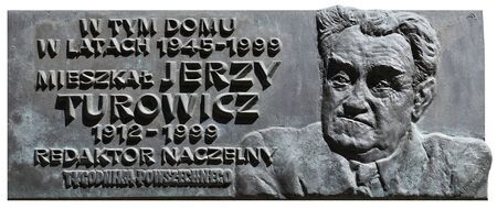 Jerzego Turowicza, laureata srebrnego medalu „Cracoviae Merenti” w 1995 r. – z kamienicy przy ul. Lenartowicza, odsłonięta w 2012 r.;