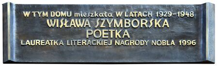 Wisławę Szymborską, honorową obywatelkę Krakowa z 1997 r. – z kamienicy przy ul. Radziwiłłowskiej, odsłonięta w 2017 r.;