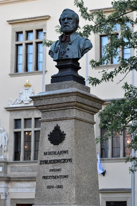 Pomnik Mikołaja Zyblikiewicza, honorowego obywatela Krakowa z 1881 r., dłuta Walerego Gadomskiego, postawiony na pl. Wszystkich Świętych przed Pałacem Wielopolskich w 1887 r. (w 1954 r. usunięty, ponownie odsłonięty w roku 1985), oraz pomnik Jana Matejki, honorowego obywatela Krakowa z 1887 r., autorstwa Jana Tutaja, odsłonięty w 2013 r. na Plantach po zachodniej stronie Barbakanu. |