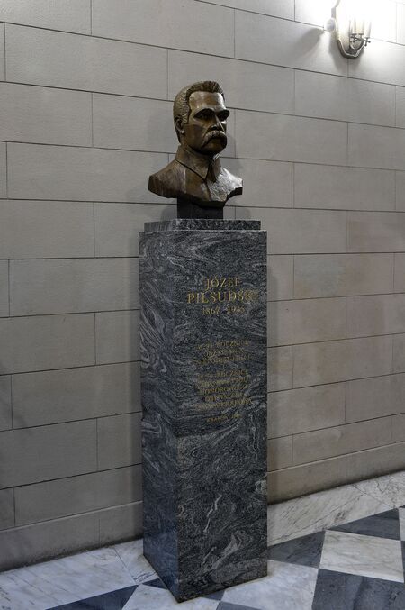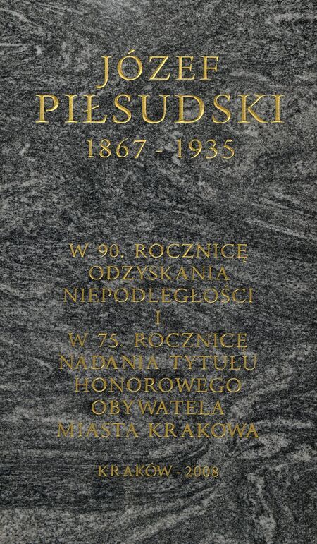 Popiersie Józefa Piłsudskiego według projektu Witolda Cęckiewicza ufundowane w 2008 r. przez samorząd Krakowa dla upamiętnienia 90. rocznicy odzyskania niepodległości oraz 75. rocznicy nadania marszałkowi tytułu honorowego obywatela Krakowa. Popiersie usytuowano w siedzibie władz miasta, w holu Kamiennym Pałacu Wielopolskich. |