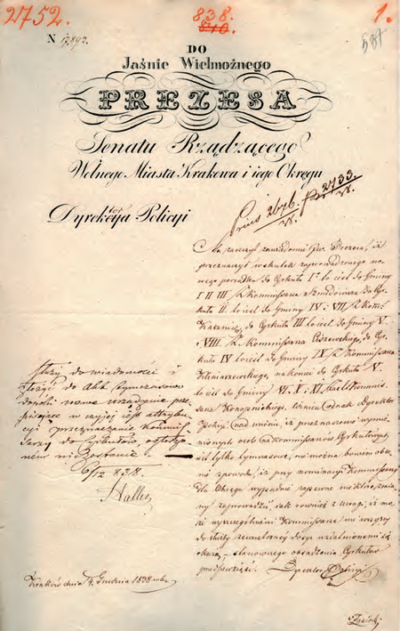 Z akt dotyczących nowej organizacji policji Wolnego Miasta Krakowa sporządzone w 1838 r. pismo dyrektora policji do prezesa Senatu Rządzącego o obsadzeniu stanowisk komisarzy cyrkułowych, w którym mowa o komisarzu Ignacym Ciszewskim (Archiwum Narodowe w Krakowie, sygn. WMK III-47B, s. 537)