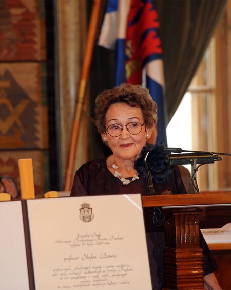 Brązowy medal nr 23 przyznany uchwałą Rady Miasta Krakowa nr LXXIX/1179/13 podjętą 10 lipca 2013 r., gdy urząd prezydenta miasta pełnił Jacek Majchrowski, a Radzie przewodniczył Bogusław Kośmider. Przyznanie odznaczenia nastąpiło w jubileusz 85-lecia urodzin uhonorowanej. Wręczenie medalu z dyplomem miało miejsce 16 października 2013 r. podczas uroczystej sesji Rady Miasta Krakowa w Sali Obrad RMK im. Stanisława Wyspiańskiego w Pałacu Wielopolskich w Krakowie, co uwieczniono w Księdze Medalu „Cracoviae Merenti”.