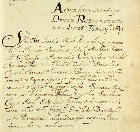 Z księgi radzieckiej dotyczącej administracji miasta obejmującej lata 1538–1643 fragment strony 557 z wpisem z 1641 roku dokonanym za kadencji burmistrzowskiej Jakuba Celesty – oraz powiększenie zapisu imienia i funkcji burmistrza (Archiwum Państwowe w Krakowie, sygn. rkps 1213, s. 557)