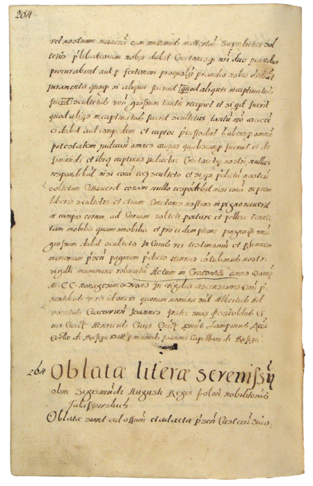 Fragment kopii dokumentu wystawionego 25 maja 1299 roku przez kasztelana Wierzbiętę (oryginał nie zachował się, dokument został oblatowany w księdze grodzkiej 19 czerwca 1581 roku z zapisem wskazującym, że wśród świadkujących osób byli Albertus aduocatus cracouiensis, Iohannes frater suus – Albert wójt krakowski, Jan brat – oraz powiększenie zapisu imienia i braterskiego pokrewieństwa (Archiwum Państwowe w Krakowie, sygn. Castr. Crac., rel. 8, s. 203–204)