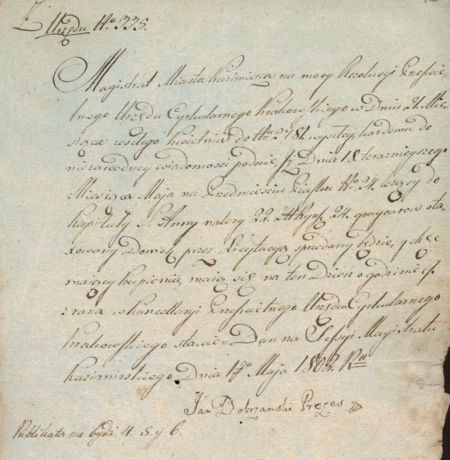 Z akt Prefektury Departamentu Krakowskiego sporządzona w 1809 roku Tabella urzędników magistrat Krakowski składających, gdzie w wykazie etatowym wymieniony został Jan Dobrzański, były burmistrz na Kazimierzu y Stradomiu, aktualny burmistrz obwodowy, czyli dzielnicy krakowskiej – oraz zbliżenie zapisu imienia i urzędu (Archiwum Narodowe w Krakowie, sygn. PDK 1, poszyt II, s. 49v–50)Z akt magistratu miasta Kazimierza z lat 1797–1802: jeden z ostatnich zachowanych dokumentów wystawionych przez władze samodzielnego miasta Kazimierza – wydane 1 maja 1802 roku przez burmistrza Jana Dobrzańskiego, podpisanego jako „prezes”, obwieszczenie o mającej się odbyć 18 maja w siedzibie Urzędu Cyrkularnego Krakowskiego licytacji domu położonego na krakowskim przedmieściu Piasek – oraz zbliżenie podpisu wraz z zapisem urzędu (Archiwum Państwowe w Krakowie, sygn. K 356, s. 725)