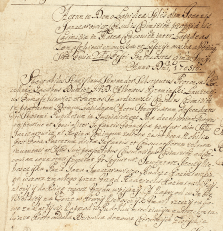 Z księgi radzieckiej Kazimierza obejmującej lata 1705–1706: początkowy fragment spisu inwentarza pośmiertnego po zmarłym rajcy Janie Janczarowiczu, dokonanego w 1705 roku przez zastępującego burmistrza rajcę Stanisława Szwandera (nr 334) oraz rajców Jakuba Dunicza (nr 322), Wojciecha Krzemieńskiego (nr 330), Wawrzyńca Tomaszkiewicza (nr 332) i Tomasza Smardzewskiego (nr 336) – oraz zbliżenie zapisu imienia i urzędu (Archiwum Narodowe w Krakowie, sygn. K 46, s. 21)