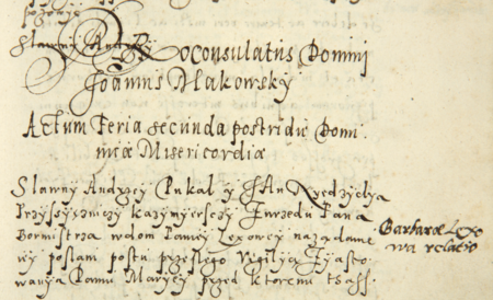 Z księgi radzieckiej Kazimierza obejmującej lata 1580–1583: wpis z roku 1581 otwierający sprawy rozpatrywane przez radę miejską za kadencji burmistrzowskiej Jana Makowskiego – oraz zbliżenie zapisu imienia (Archiwum Narodowe w Krakowie, sygn. K 19, s. 151)