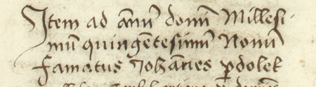 Z księgi miejskiej ławniczej Kleparza obejmującej lata 1499–1528: fragment wpisu z 1509 roku dokumentującego wybór wójta miasta Kleparza, którym został Jan Perdolek, rajca kleparski – oraz zbliżenie zapisu imienia (Archiwum Narodowe w Krakowie, sygn. KL 1, s. 139)
