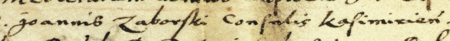 Kuśnierz kazimierski, we władzach miejskich spędził nieprzerwanie czterdzieści cztery lata. Przez pierwszą dekadę, zamkniętą w przedziale lat 1528–1538, zasiadał w ławie miejskiej, uzyskując rokrocznie powołania na ławnika. W latach 1539 i 1543 jego doświadczenie zostało wykorzystane na urzędzie wójta kazimierskiego. Z wójtostwa awansowany został w roku 1544 do rady miejskiej, rajcą był przez dwadzieścia siedem lat, w trakcie których siedmiokrotnie powoływany był do rady urzędującej-burmistrzowskiej. W czasie konfliktu między kazimierskimi sukiennikami a krakowskimi handlarzami wełną brał udział w 1546 roku w uchwaleniu wilkierza (ustawy miejskiej) w sprawie kupna i sprzedaży wełny na wyroby sukiennicze i kapelusznicze. Wtedy też wspólnie z towarzyszem cechowym, rajcą Maciejem sukiennikiem zwanym Wojkowskim (nr 197), żądał od rady miejskiej Kazimierza zawarcia w spisanej po łacinie ustawie dla cechu sukienników i kapeluszników polskojęzycznego fragmentu o płacach dla czeladzi za świadczone roboty, a to ze względu na trudności słownictwa używanego w owym rzemiośle. W kazimierskim regestrze spraw kryminalnych zapisano pod rokiem 1562, że Maciej spod Opoczna przesłuchiwany zeznał, iż do Pana Zaborskiego Raicze Kasimirskiego wlazł w nocy do domu przez dach y ukradł poduszki, pierzynki trzy i płachtę, które z domu wycisnął. Zaniósł to do wspólniczki, którą była z dworu Pana Jordanowego niewiasta co ją przezywają Gołką i tam z tymi rzeczami pojmany został. Rajca Jan Zaborski miał dom murowany położony przy dzisiejszej ul. Józefa 10. Zmarł w 1571 roku, na jego miejsce do rady na rok 1572 został powołany Piotr Czarny młodszy (nr 234).