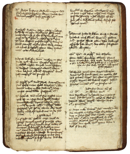 Z księgi ławniczej obejmującej lata 1365–1376 strony 206–207 z wpisem z 1375 roku, stwierdzającym, że Jerzy Czeyn zakupił od Apolonii, żony Jana Stolcza, dom przy ul. Floriańskiej – oraz powiększenie zapisu imienia (Archiwum Państwowe w Krakowie, sygn. rkps 2, s. 206–207)
