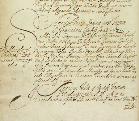 Z księgi radzieckiej dotyczącej administracji miasta obejmującej lata 1538–1643 fragment strony 306 z wpisem z 1621 roku za kadencji burmistrzowskiej Jerzego Klausnica – oraz powiększenie zapisu imienia i funkcji burmistrza (Archiwum Państwowe w Krakowie, sygn. rkps 1213, s. 306)