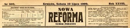 Reprodukcja wpisu do Złotej księgi miasta Podgórza oraz notatka prasowa z dziennika „Nowa Reforma” z 1909r., nr 309, o zgonie w drodze powrotnej z kolejnego pobytu w Karlsbadzie.