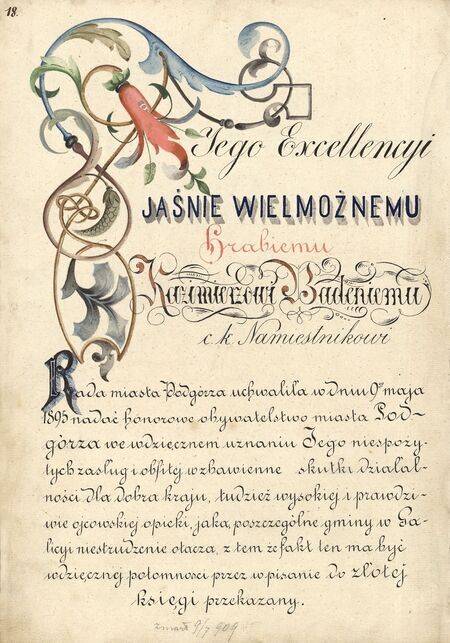 tytuł honorowego obywatela Podgórza nadany 9 maja 1895 roku |