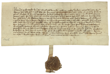Dokument wydany w 1408 roku w Kazimierzu przez ławę miejską, w którym kazimierscy ławnicy, z Klemensem Chadą w składzie, stwierdzili, że Jan Elianus (nr 49), wójt kazimierski, jako opiekun Jana Kulkirmana i jego żony Anny, sprzedał jatkę mieszczaninowi kazimierskiemu Piotrowi Molnerowi (nr 68); przy dokumencie ułamek pieczęci ławniczej kazimierskiej – oraz zbliżenie pieczęci i zapisu imienia (Archiwum Narodowe w Krakowie, sygn. perg. 146)