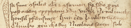Z najstarszej zachowanej księgi radzieckiej Kazimierza obejmującej lata 1369–1381: fragment wpisu dokumentującego wybór rajców na rok 1375, z Klimkiem Chadą w składzie – oraz zbliżenie zapisu imienia (Archiwum Narodowe w Krakowie, sygn. K 1, s. 119)