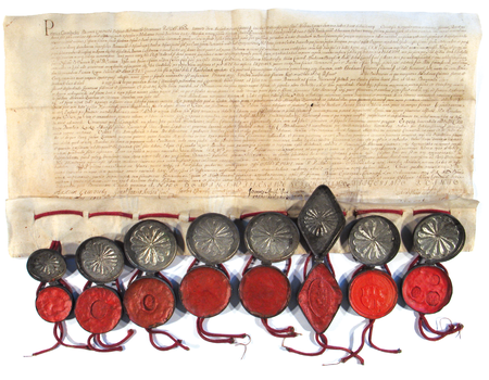 Dokument wydany w 1635 roku w Krakowie, w którym Piotr Gembicki dziekan, Jan Fox archidiakon, Jakób Ostrowski kanonik krakowski i Maksymilian Jarzyna sędzia ziemski sochaczewski oznajmiają, że klasztor Norbertanek na Zwierzyńcu i miasto Kraków, reprezentowane przez rajców krakowskich Krzysztofa Słowikowskiego, Stanisława Konradta (nr 470) i Andrzeja Bełzę (nr 484), zawarło ugodę w sprawie granic posiadłości zwierzynieckich i miasta – oraz powiększenie podpisu złożonego własną ręką (Archiwum Państwowe w Krakowie, sygn. perg. 762)