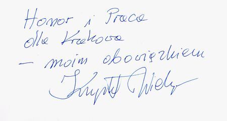 Z uroczystości wręczenia medalu z dyplomem 11 grudnia 2019 r. w Pałacu Wielopolskich. Krzysztof Wielgus w Sali Obrad RMK oraz własnoręczny podpis uhonorowanego.