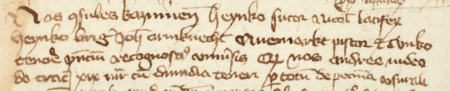 Z najstarszej księgi radzieckiej Kazimierza obejmującej lata 1369–1381: wpis umieszczony pod rokiem 1377, jednak pochodzenia późniejszego, z lat 1379–1384 – oraz zbliżenie zapisu imienia (Archiwum Narodowe w Krakowie, sygn. K 1, s. 185)