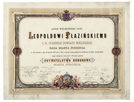 tytuł honorowego obywatela Podgórza nadany 16 stycznia 1879 roku |