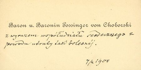 Portret Ludwika Possingera von Choborskiego oraz własnoręczny podpis uhonorowanego.